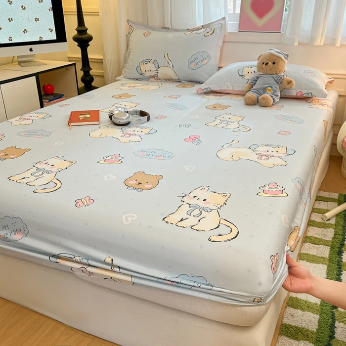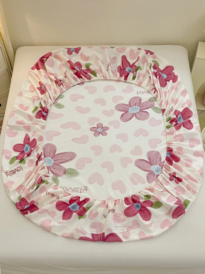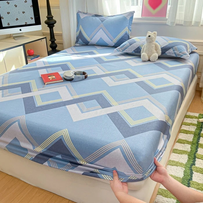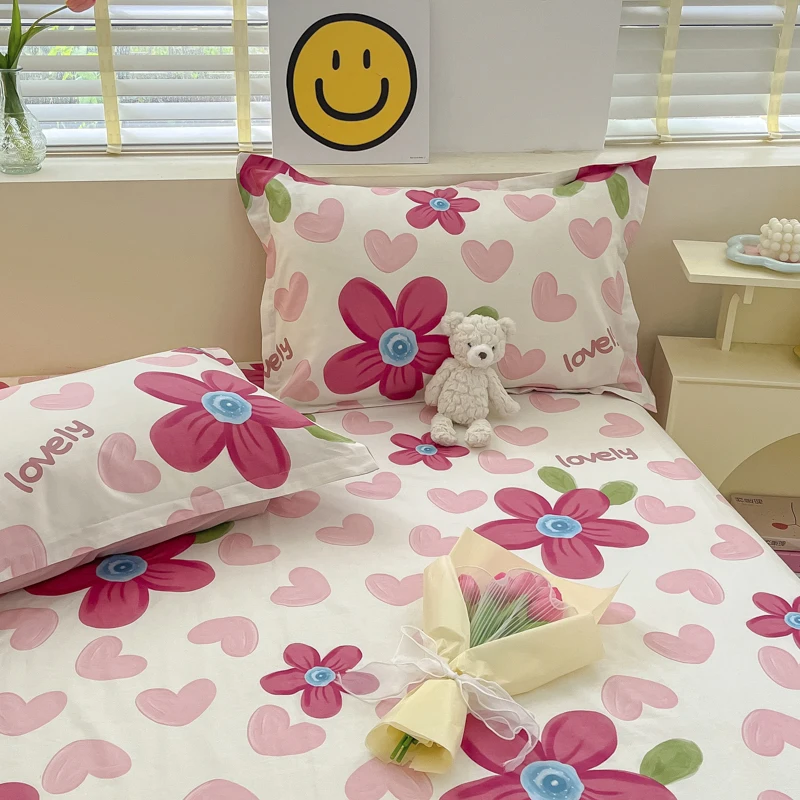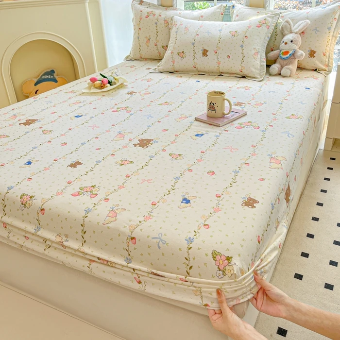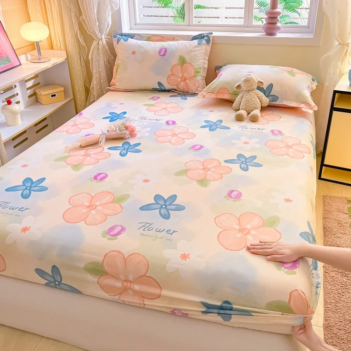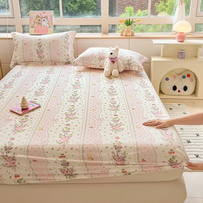 100%Pure Cotton Fitted Bed Sheet Sets with Pillowcase Flower Printing Bed Cover Single/Queen/King Size fundas de colchón Sheets