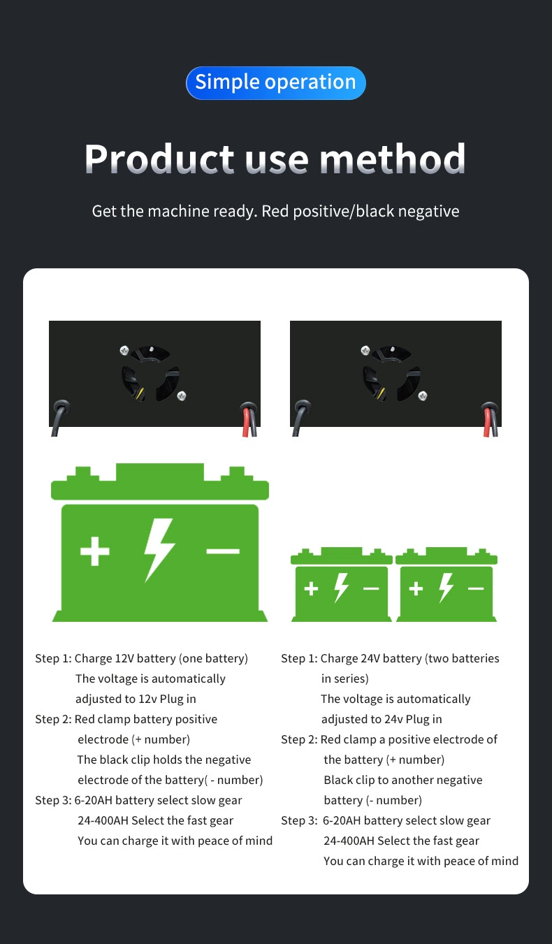 Practical battery range 12V/24V (Lithium battery prohibited)