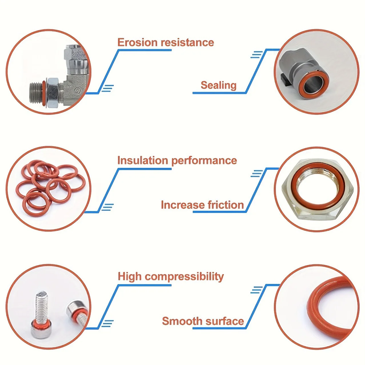 351pcs silicone O-ring set, 10 sizes, oil and heat resistant, suitable for cars and pipelines