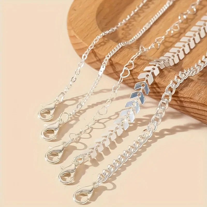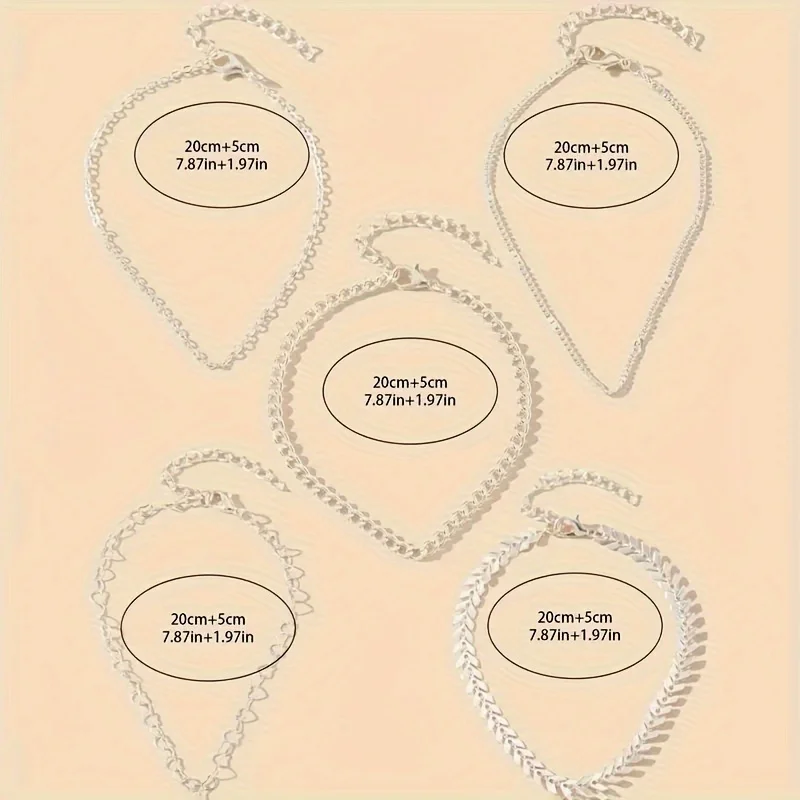 5Pcs Vintage Aesthetics Heart Chain Anklets Fashion Creative Airplane Chain Foot Chain Women’s Boho Summer Beach Foot Jewelry