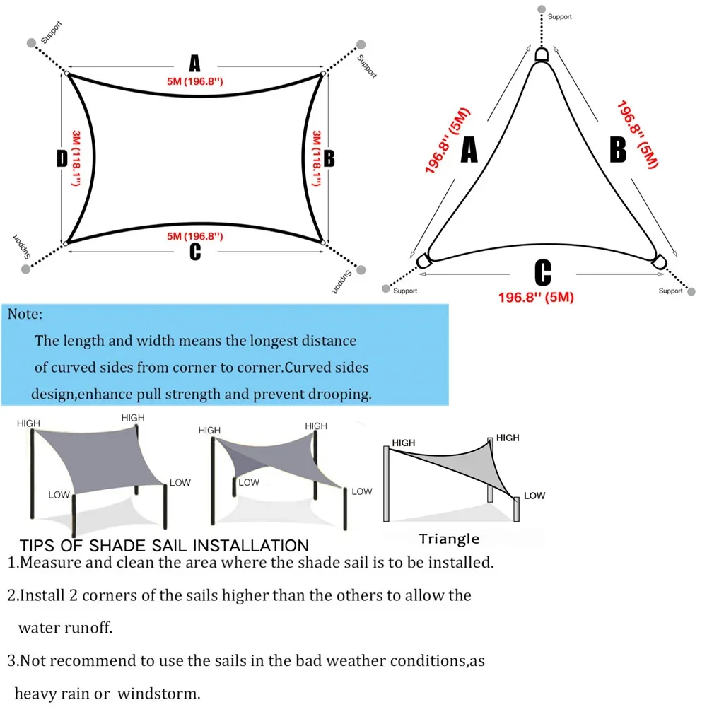 For Rectangle shade sail: 3x2M,3x4M,3x5M