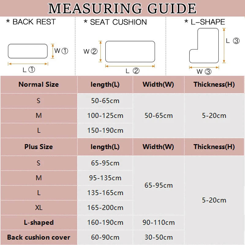 How To Choose? 1.Measure The Length Width And Height Of Each Cushion. 2.Select 1 Piece Cushion Cover For Each Cushion.