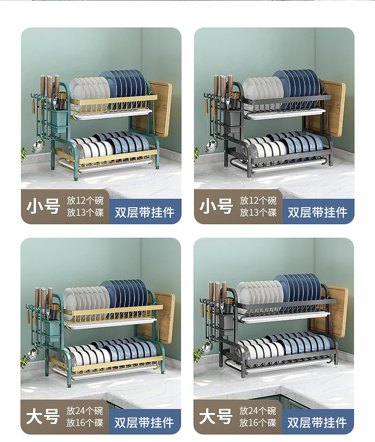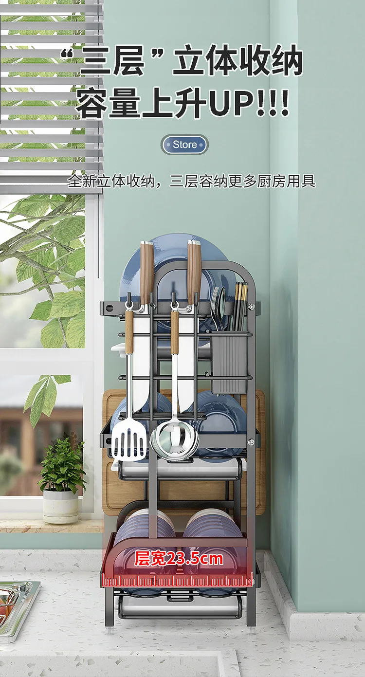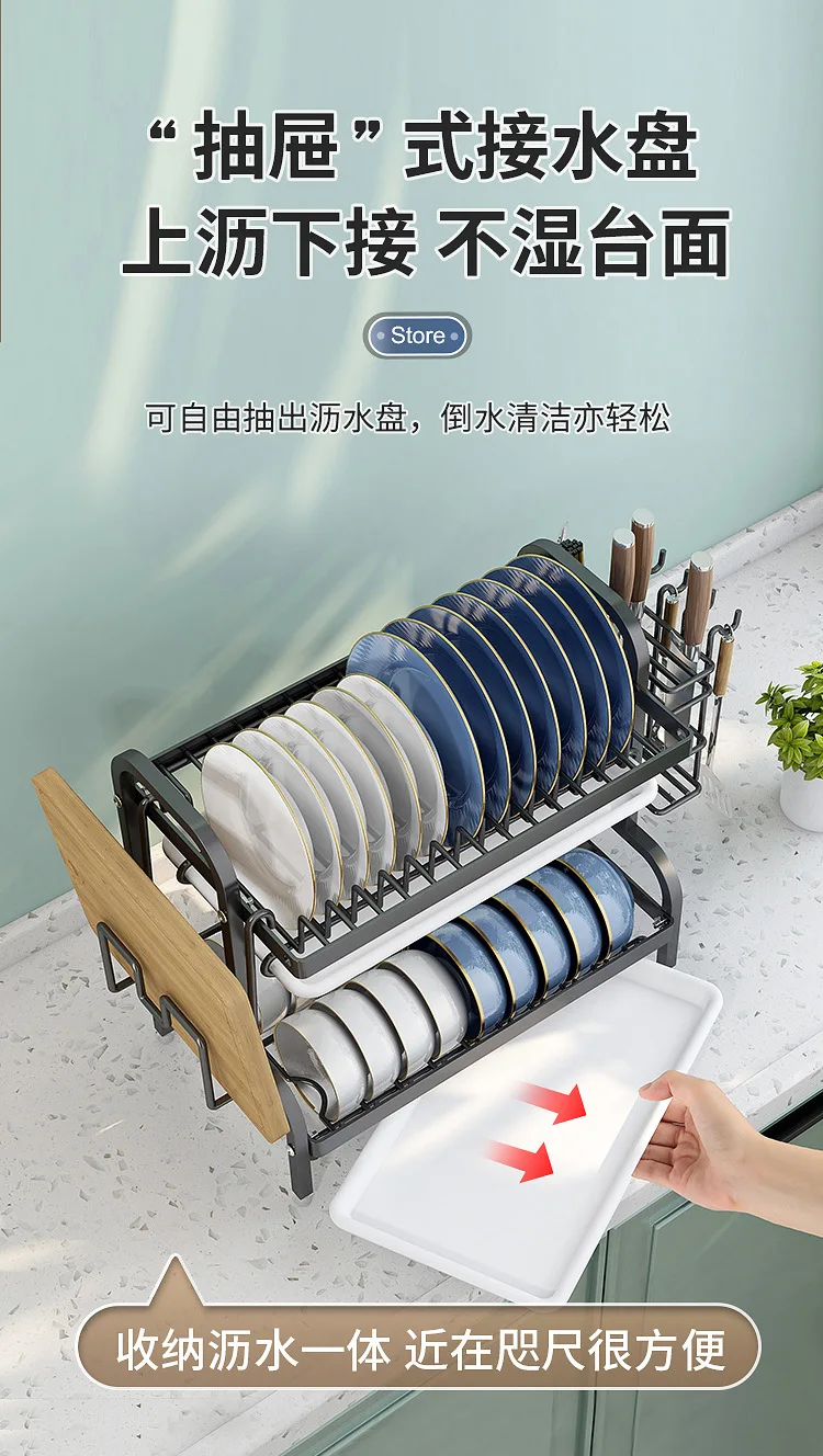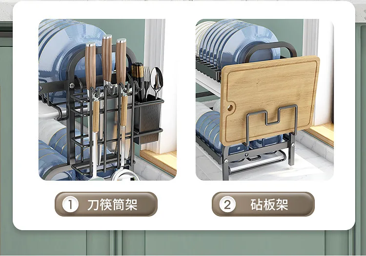 Multi-Functional Kitchen Storage Rack】Dish Plate Organizer with Drainage Rack Countertop Utensil Holder for Chopsticks