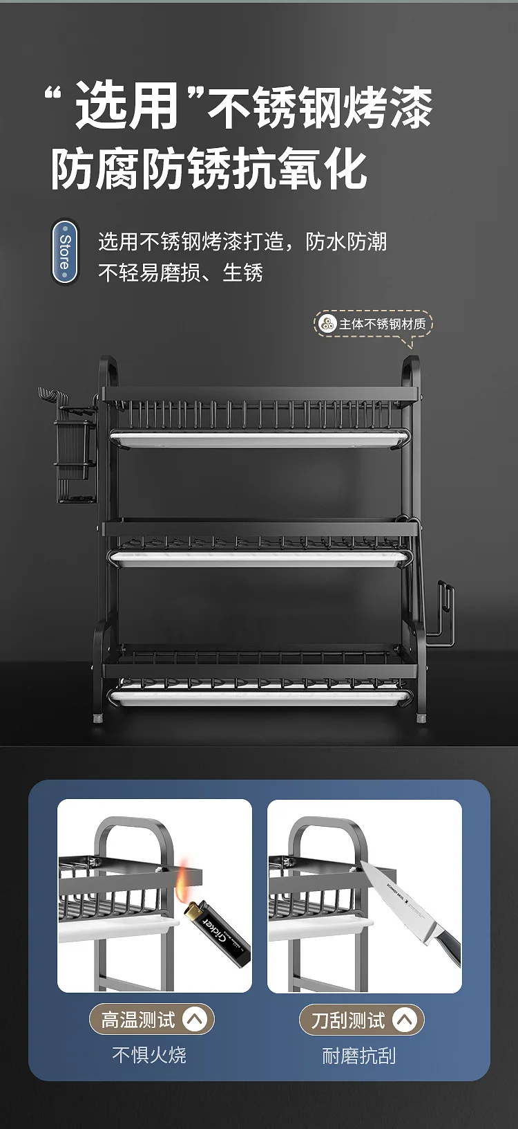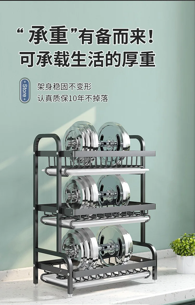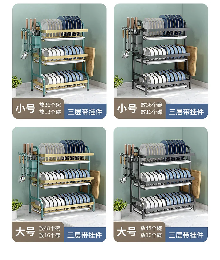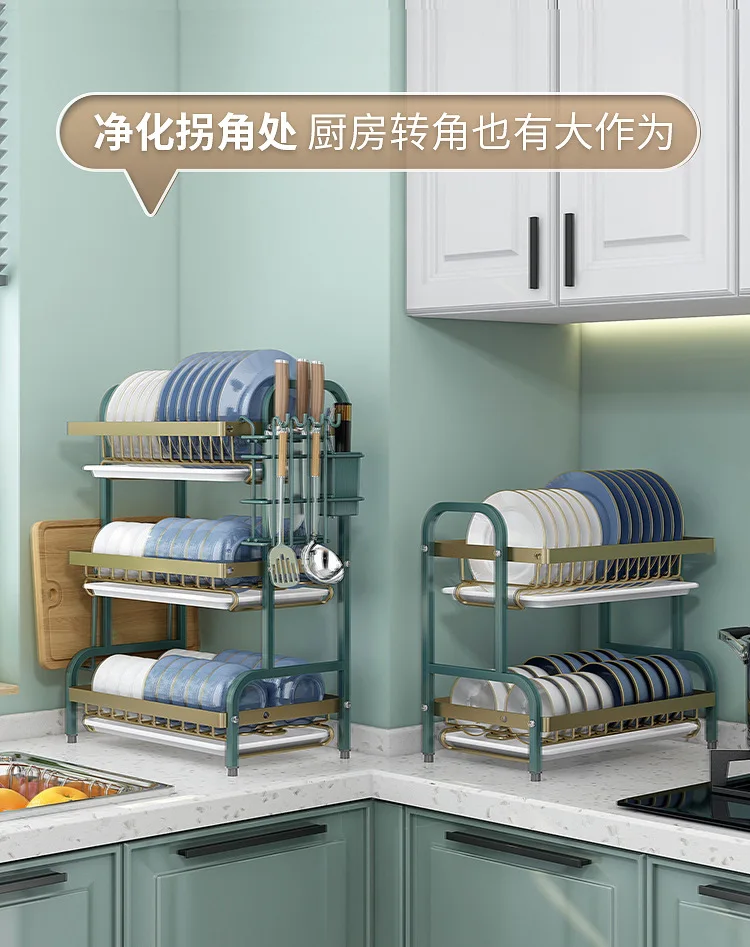 Multi-Functional Kitchen Storage Rack】Dish Plate Organizer with Drainage Rack Countertop Utensil Holder for Chopsticks
