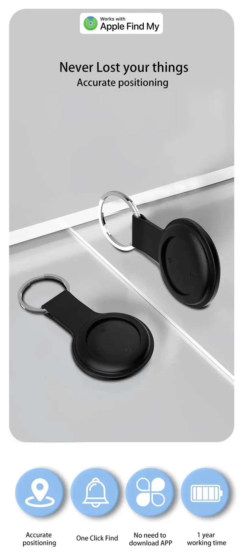 *Smart Item Finder Tags:For Apple systems, Keep track and search for your items on App .When your item is lost, it can guide you directly to nearby items and find them as quickly as possible. Get a protective case that you can hang on your key, bag and luggage.