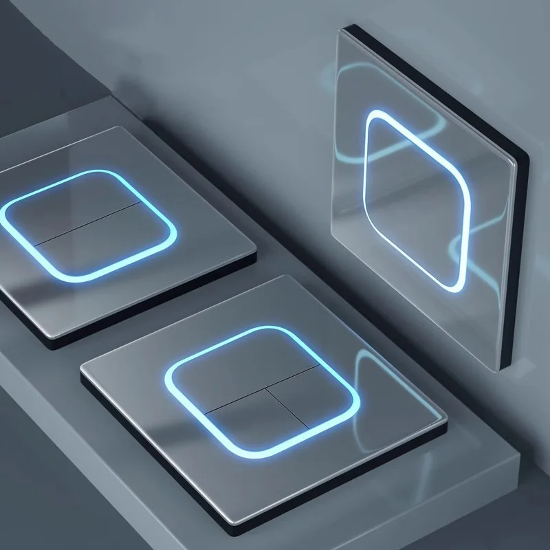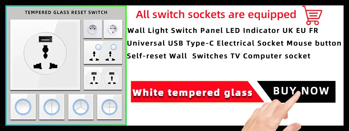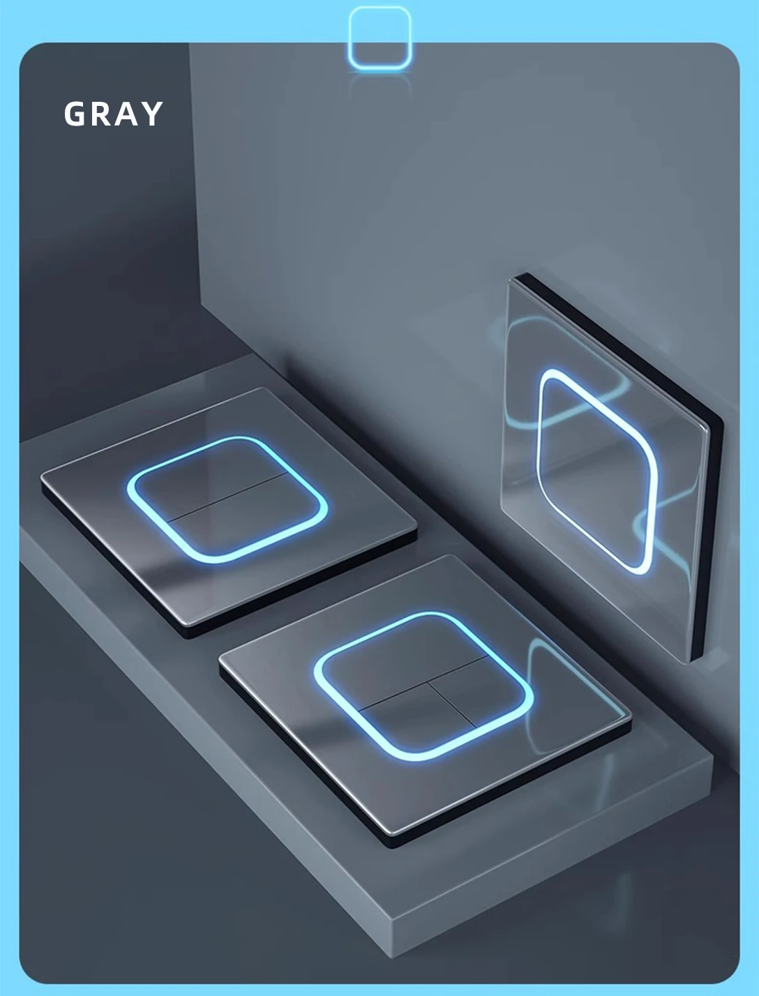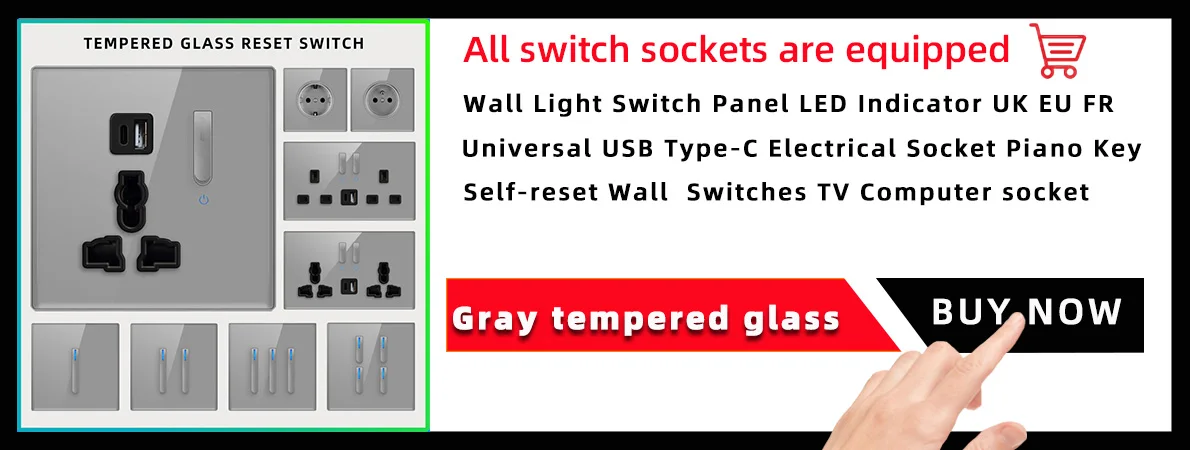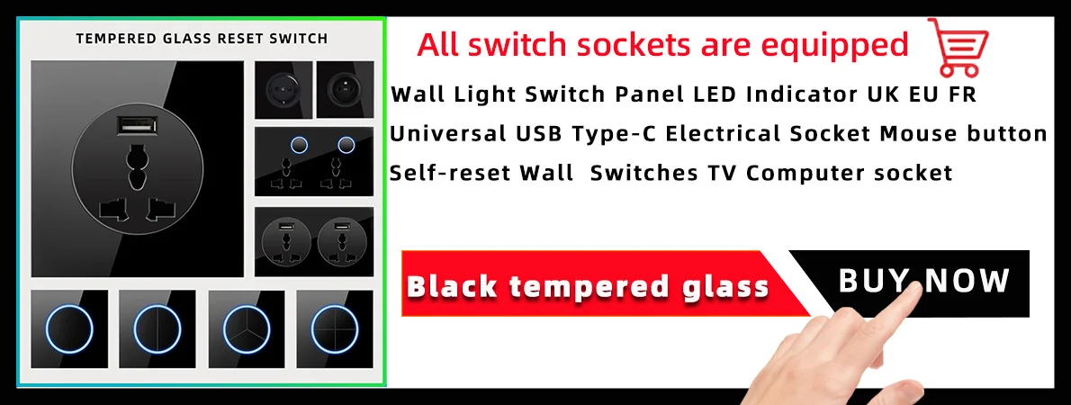 Tempered glass panel 1 2 3 4 gang wall button light switch 1 2Way international general LED indicator reset point power switch