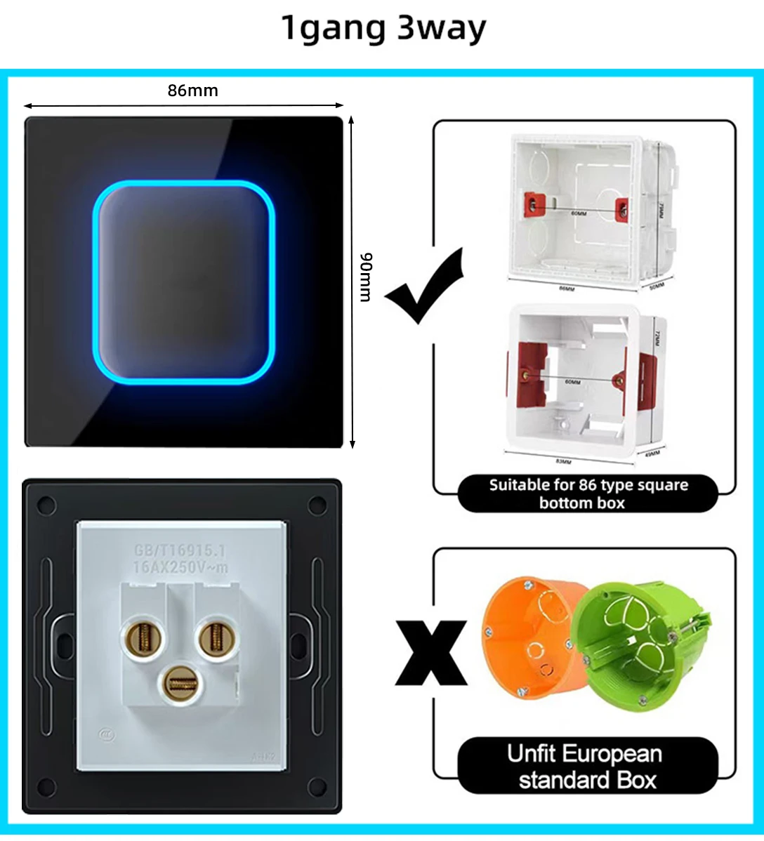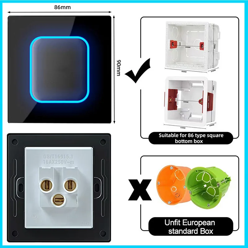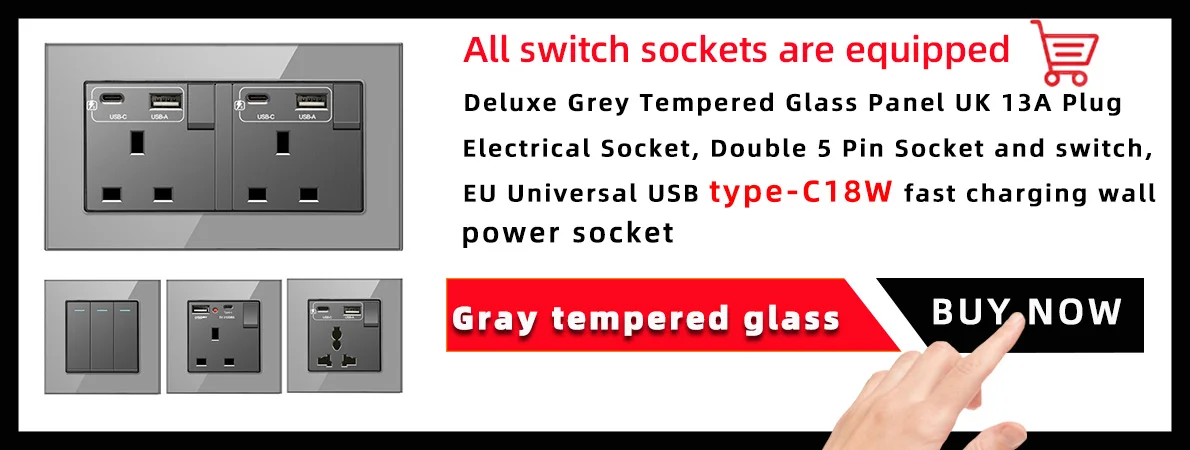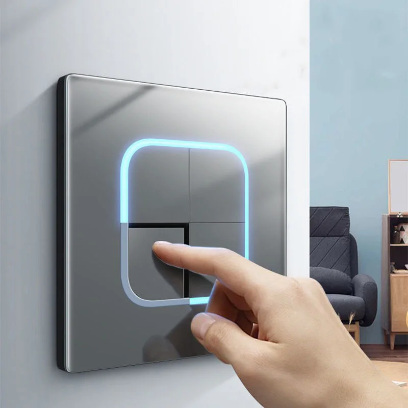 Tempered glass panel 1 2 3 4 gang wall button light switch 1 2Way international general LED indicator reset point power switch