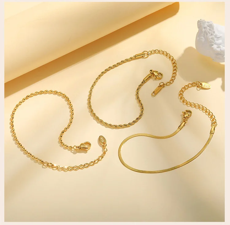 Thin Link Women Bracelet, Stainless Steel 18K Gold Plated Wrist Chain Waterproof Resistant Jewelry