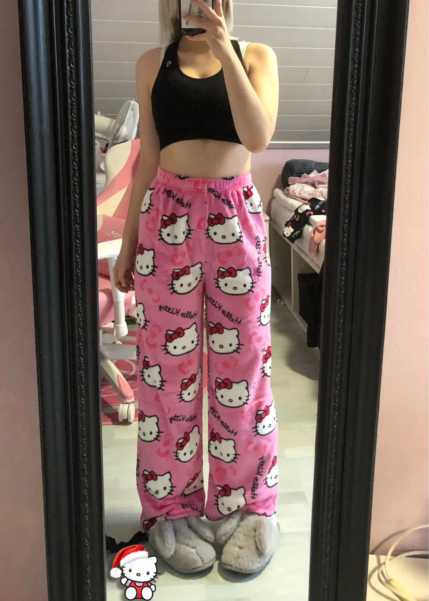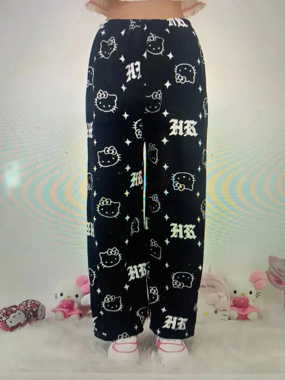 Sanrio Hello Kitty Anime Y2k Kawaii Flannel Pajamas Women’S Warm Woolen Cartoon Casual Home Pants Autumn Winter Fashion Trousers
